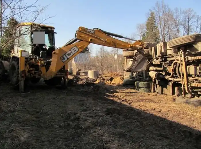 Падает открытый кузов с песком и тянет за собой грузовик. У вас когда-нибудь падал грузовик на участке?