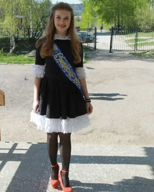 воображение сразу рисует на ней пилотку и синий мундир...после школы полюбасу в органы пойдет