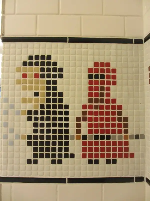Раскладка цветной наборной плиткой выглядит примерно вот так. Плитку надо искать, причем точно высчитывать количество плиточек каждого цвета.