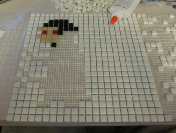 Плитка наносится на заранее приготовленную основу в зеркальном отображении приготовленного рисунка. Потом будет понятно зачем это сделано.