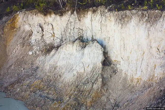 На карьере попадаются обрывистые берега.