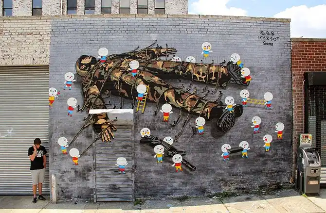 Искусство нашего времени. Для уличных художников весь мир — как один большой холст, и поэтому стрит-арт развивается самыми быстрыми темпами из всех существующих видов искусства. Уличное искусство — это в первую очередь социальное явление, отражающее общество и его устремления. Оно не сковано цензурой и рамками приличия, поэтому художники творят на стенах городов все, что захотят.