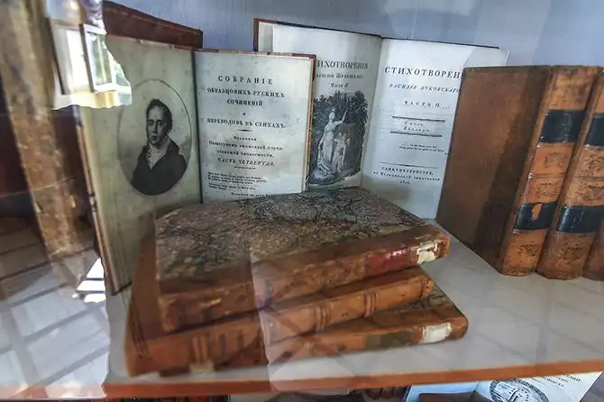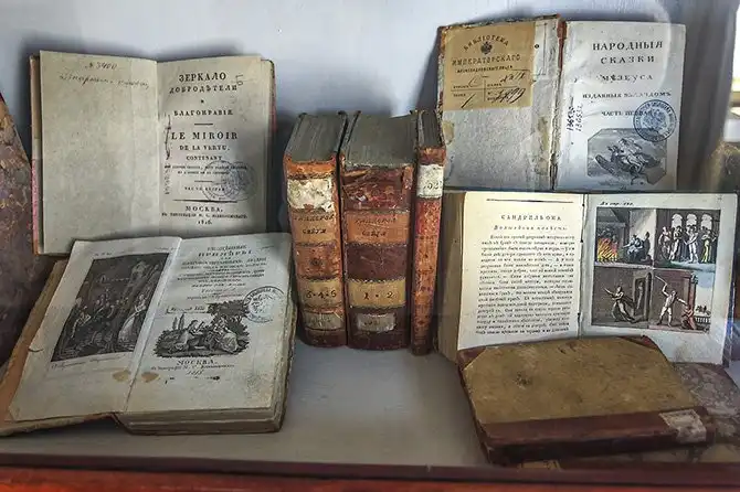 Некоторые из представленных книг находились здесь во времена Пушкина.