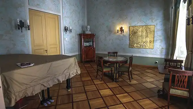 Комната Пушкина была по соседству, их разделяла тонкая перегородка, через которую друзья перестукивались по ночам.