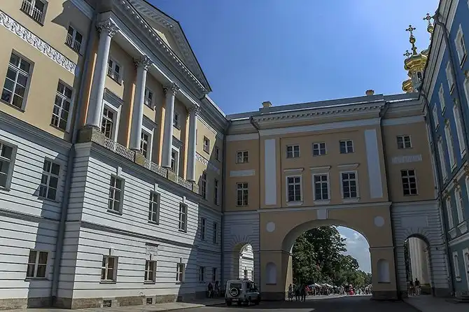 Аркой с крытым переходом лицей соединился с дворцом — результат планов по обучению здесь Великих Князей. В 1917 году лицей был закрыт, но музеем он стал лишь в 1947 году, причём для этого пришлось полностью восстанавливать внутреннюю обстановку, ведь после войны здание представляло собой голые стены. Всё, что мы видим сейчас, воссоздано коллективом под руководством архитектора А. А. Кедринского.