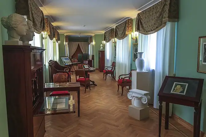 В фойе музея стоит мраморная скульптура поэта-лицеиста.