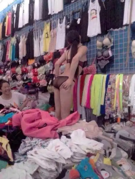Чтобы увеличить продажи, хорошая идея - показать товар лицом. Именно так и решила поступить продавщица нижнего белья на рынке в городе Таншань, провинция Хэбэй. Возомнив себя ангелом Victoria’s Secret, она начала примерять на себя различные комплекты и красоваться перед потенциальными покупателями.