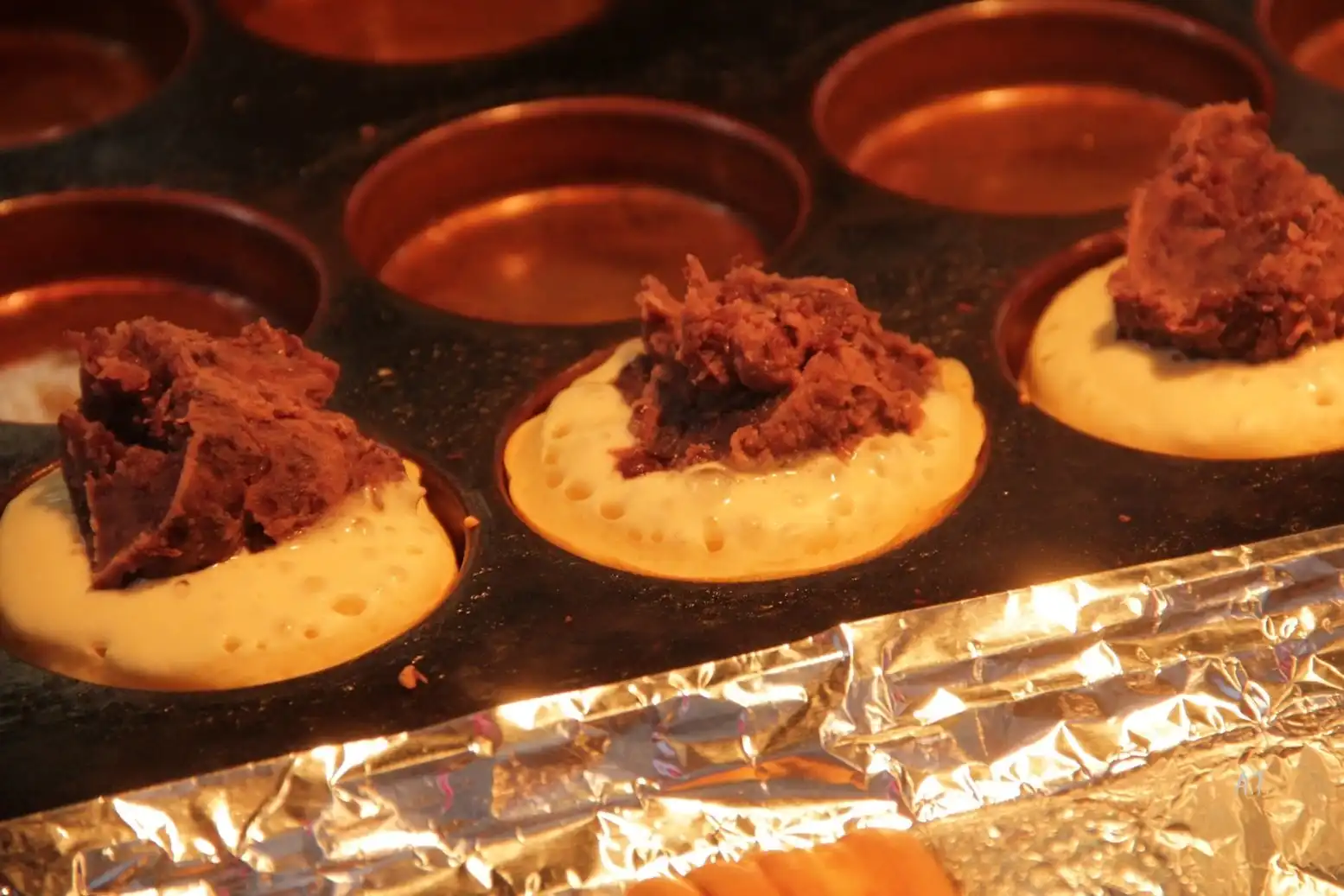 А тем временем смотрим как делают эти штучки. Начинка из красных сладких бобов. К слову, белые бобы тоже сладкие.