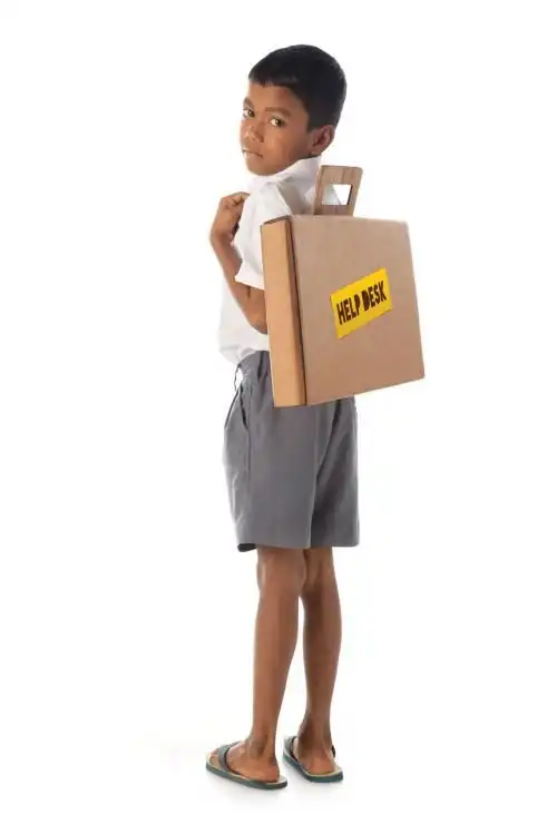 В развивающихся странах сама возможность учиться в школе уже является роскошью. Поэтому жаловаться на условия обучения не приходится. Зачастую в качестве рабочего стола выступает пол. Поэтому добрые люди придумали дешевый портфель из картона, который легко превращается в школьную парту.