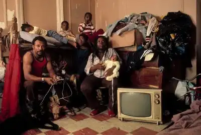 Афроамериканская семья в своей квартире в районе Бедфорд-Стейвесант, Бруклин.