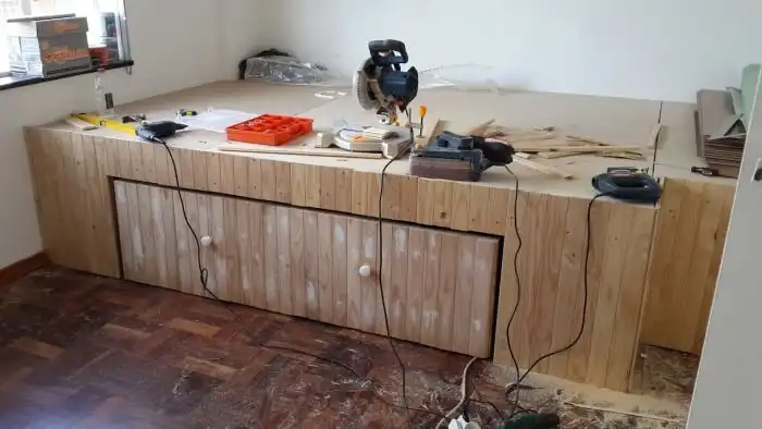 Очень креативный дизайн спальни, который поможет вам увеличить полезное пространство. Что самое интересное, если у вас руки растут из нужного места, вы можете и сами переоборудовать свою спальню таким образом, сделав еще и свой рабочий кабинет в этом же помещении.