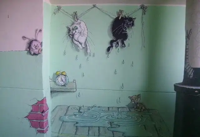В каком бы культурном районе ты не жил, всегда найдется какой-нибудь козел, который испишет стены подъезда всякими гадостями. Один талантливый отец семейства вооружившись гуашью и карандашами избавил соседей от никому не нужного "народного творчества". Заодно собственных детишек порадовал.