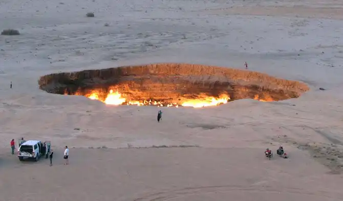 Дарваза (перс. «врата») — газовый кратер в Туркменистане. Но местные жители и путешественники называют его «Дверь в преисподнюю», или «Врата Ада».