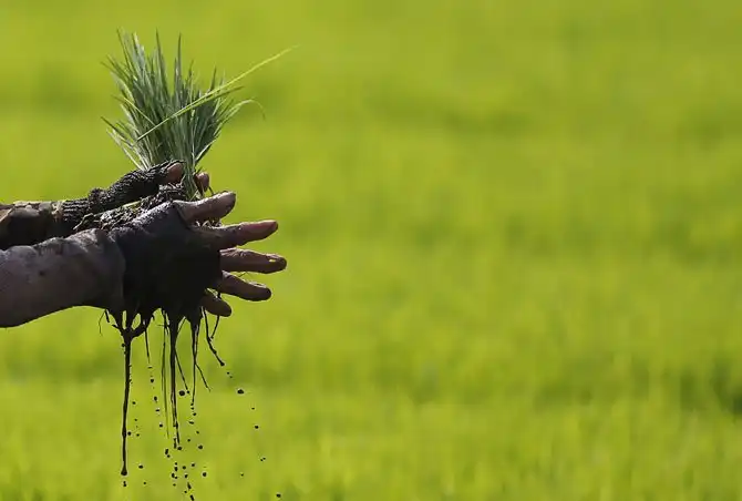 Фермер на рисовом поле в провинции Западная Ява, Индонезия, 12 июня 2014.
