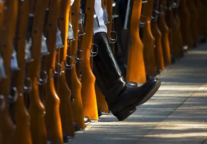 Фальстарт. Члены почетного караула на встрече премьер-министра Италии в Пекине, Китай 11 июня 2014.