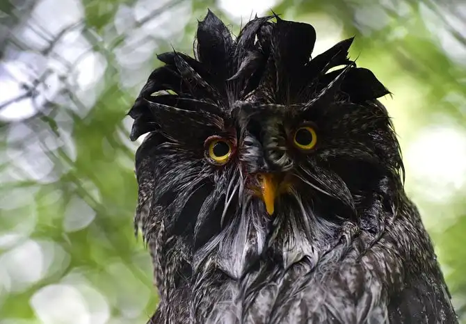 Так забавно выглядит сова после ливня. Зоопарк в Эберсвальде, Германия, 10 июня 2014.