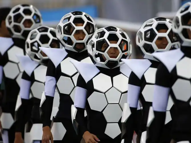 Артисты в костюмах во время церемонии открытия ЧМ-2014 в Сан-Паулу, 12 июня 2014.