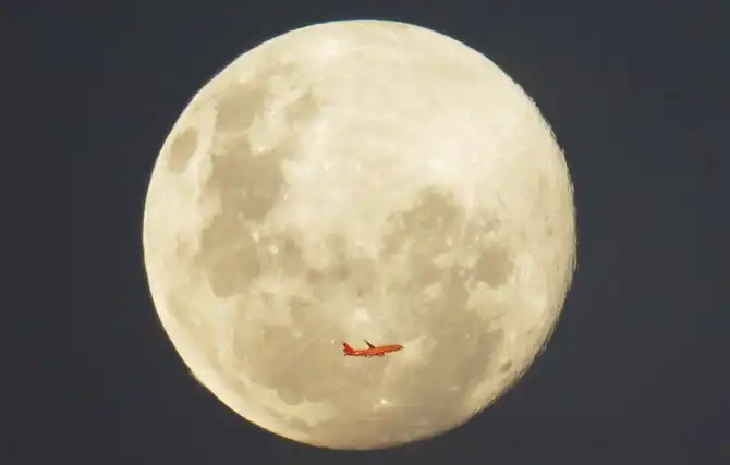 Самолет и полнолуние в Сиднее, 12 июня 2014.