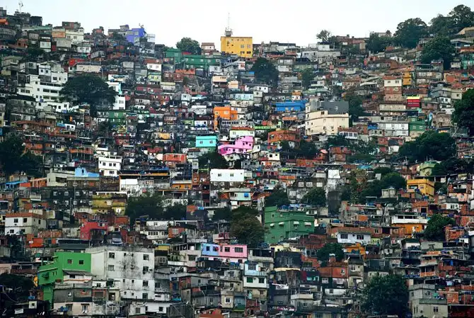 Фавелы в Рио-де-Жанейро, Бразилия, 9 июня 2014. Фавелы — трущобы в городах Бразилии, часто расположенные на склонах гор. В фавелах отсутствует развитая инфраструктура и высок уровень преступности.