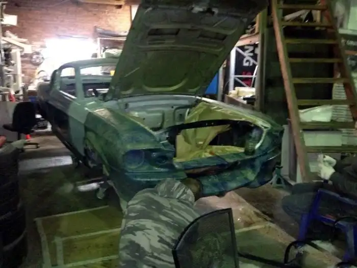 Все началось с того, что к нам в работу встал Ford Mustang Fastback 67-го. Задача стояла подогнать обвес Eleanor, как в фильме "Угнать за 60 секунд" 2000 года. Обвес был куплен владельцем этого авто в штатах и оказался достаточно кривым, не подходили практически все элементы. Перед тем, как взять авто в работу я решил глянуть в сети фотки, как именно должен стоять этот обвес. Ну и наткнулся на эту фотографию готового дивана.