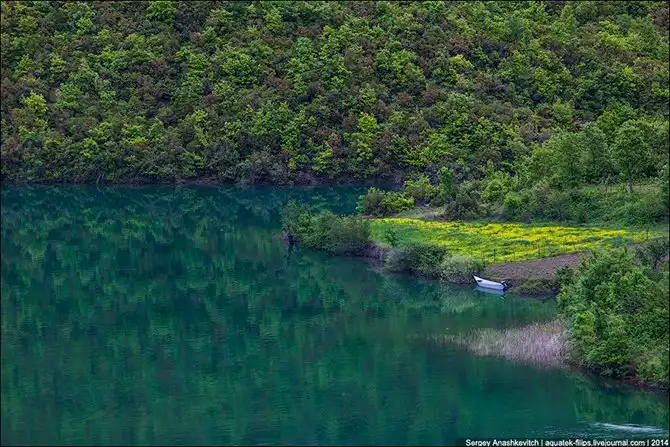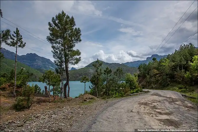 Албанская глубинка оказалась просто поразительной. Когда мы сворачивали с грязной трассы на потрескавшуюся дорогу в сторону озера Коман, я и представить не мог, какие невероятные пейзажи ждут нас впереди. Сумасшедше красивый каньон с сотнями фьордов и кристальной озерной водой, по краю которого вьется серпантин дороги, никогда не знавшей ремонта и ютятся полуразрушенные домики местных жителей.