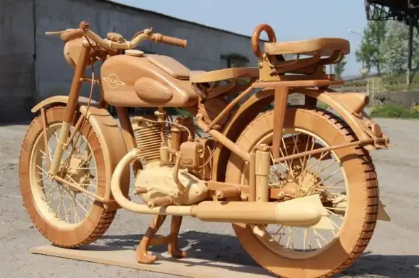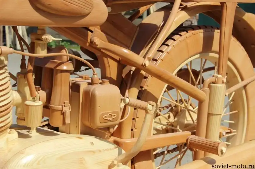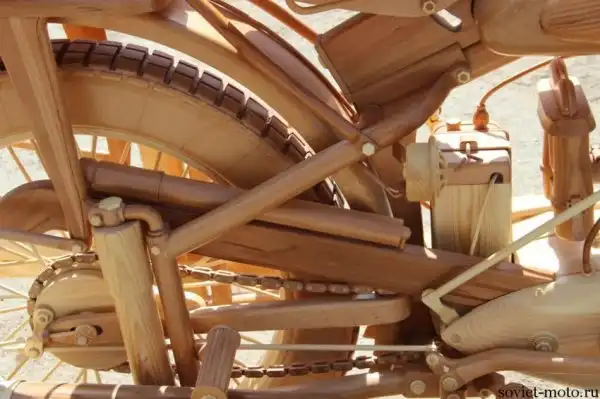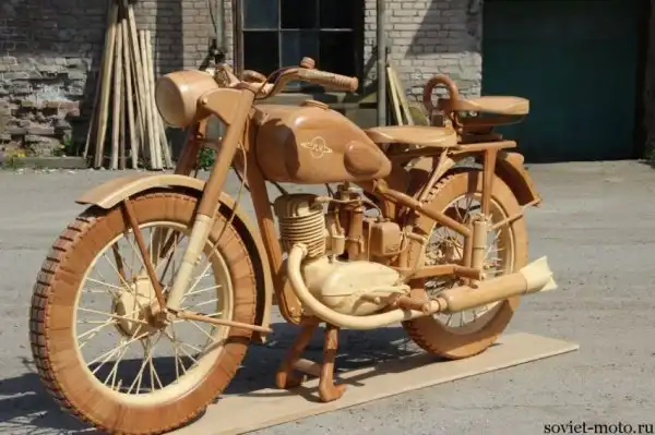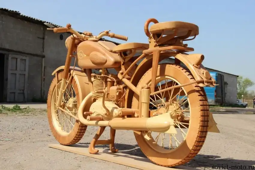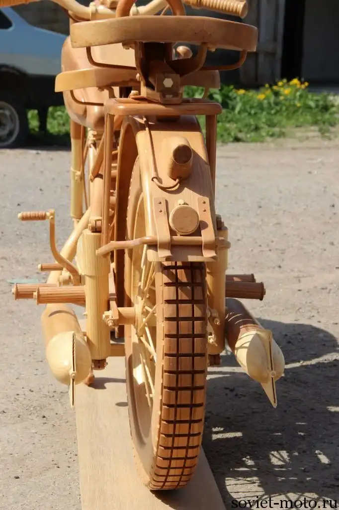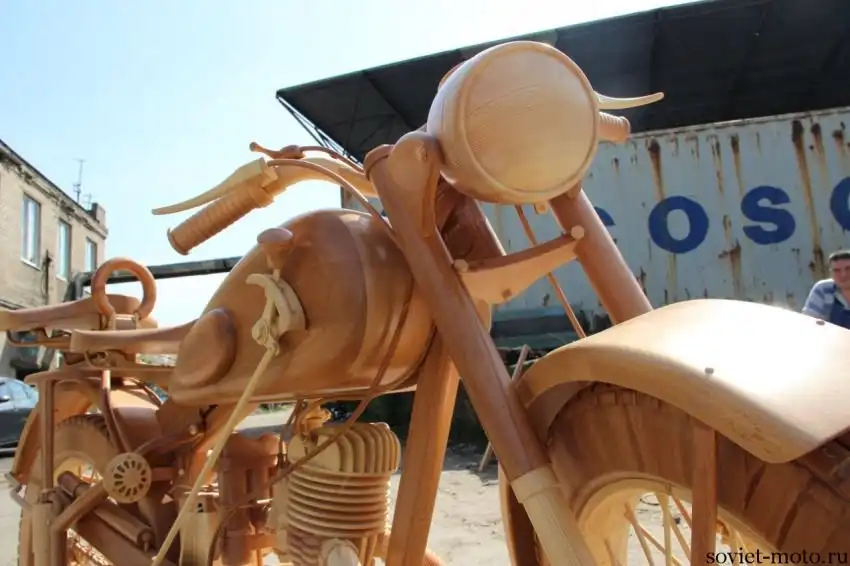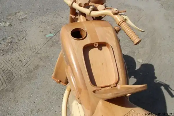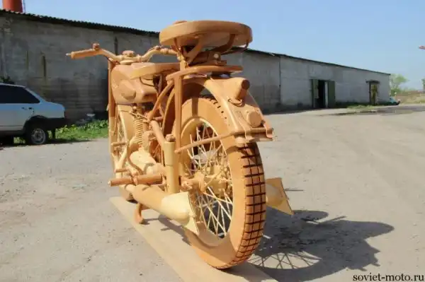 Идея создания точной копии легендарного советского мотоцикла ИЖ-49 из дерева появилась у Юрия Хвтисишвили после начала нового, 2014-го года. Работает Юрий в столярной мастерской и, так как работы в это время года было немного, он решил найти себе какое-нибудь интересное занятие в эти длинные зимние вечера.