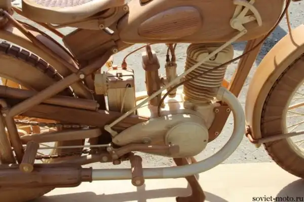 Работа над проектом началась 18 января 2014 года. День за днём продвигалась работа над созданием максимально точной копии классики советского мотопроизводства. Все детали мотоцикла, включая болты и прочие мелочи выполнены на 100% из дерева. При изготовлении использовались два вида древесных материалов: бук и сосна. Выбор пал на именно на эти ввиду их замечательного сочетания. Работа заняла у Юрия ровно 4 месяца, то есть была завершена 18 мая.