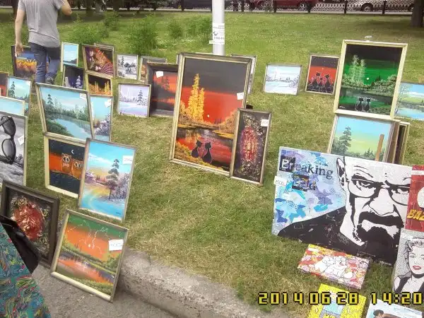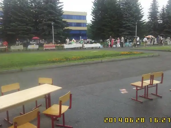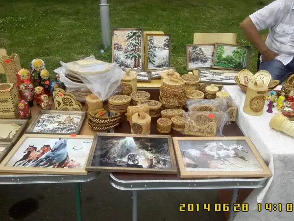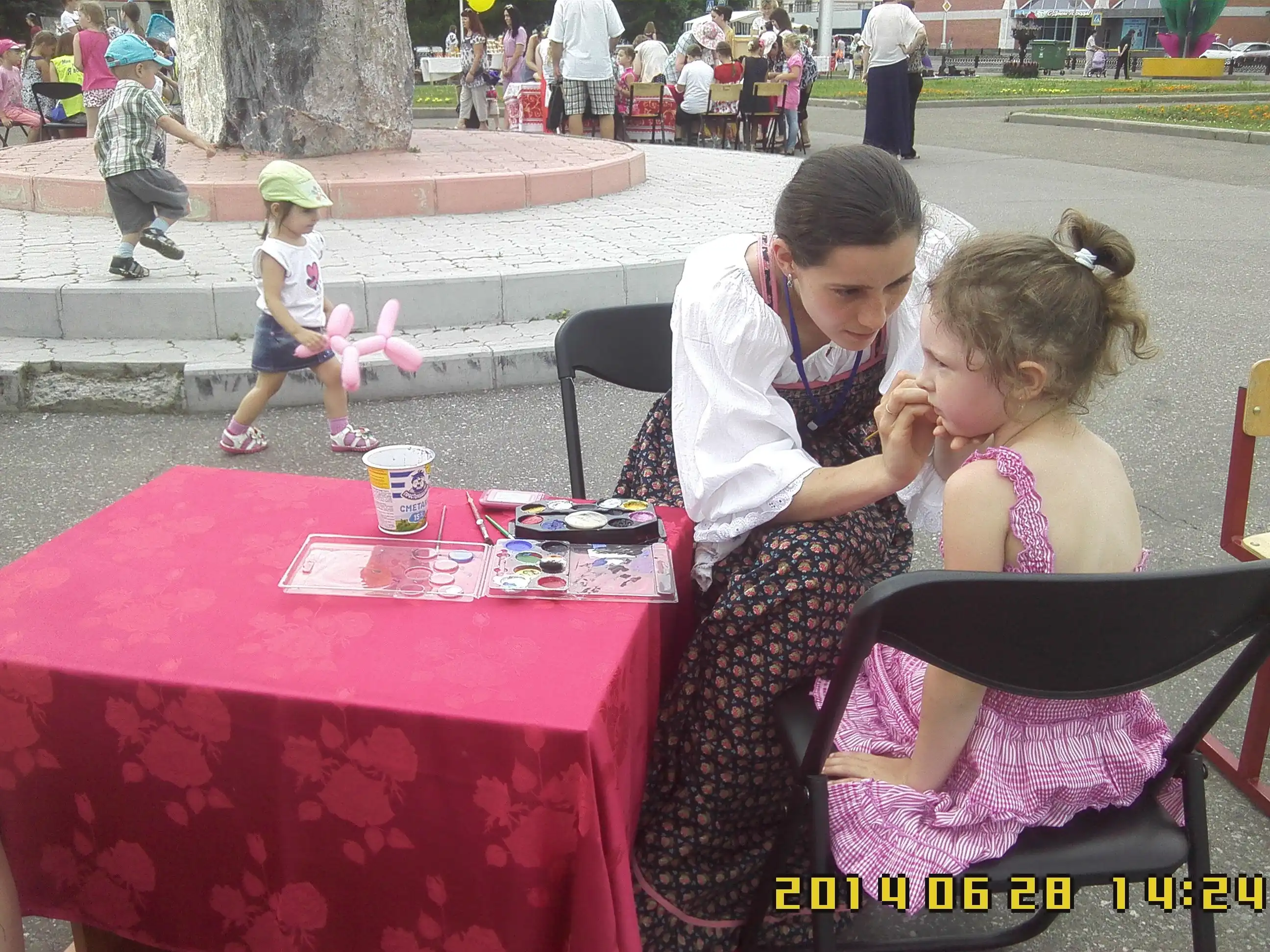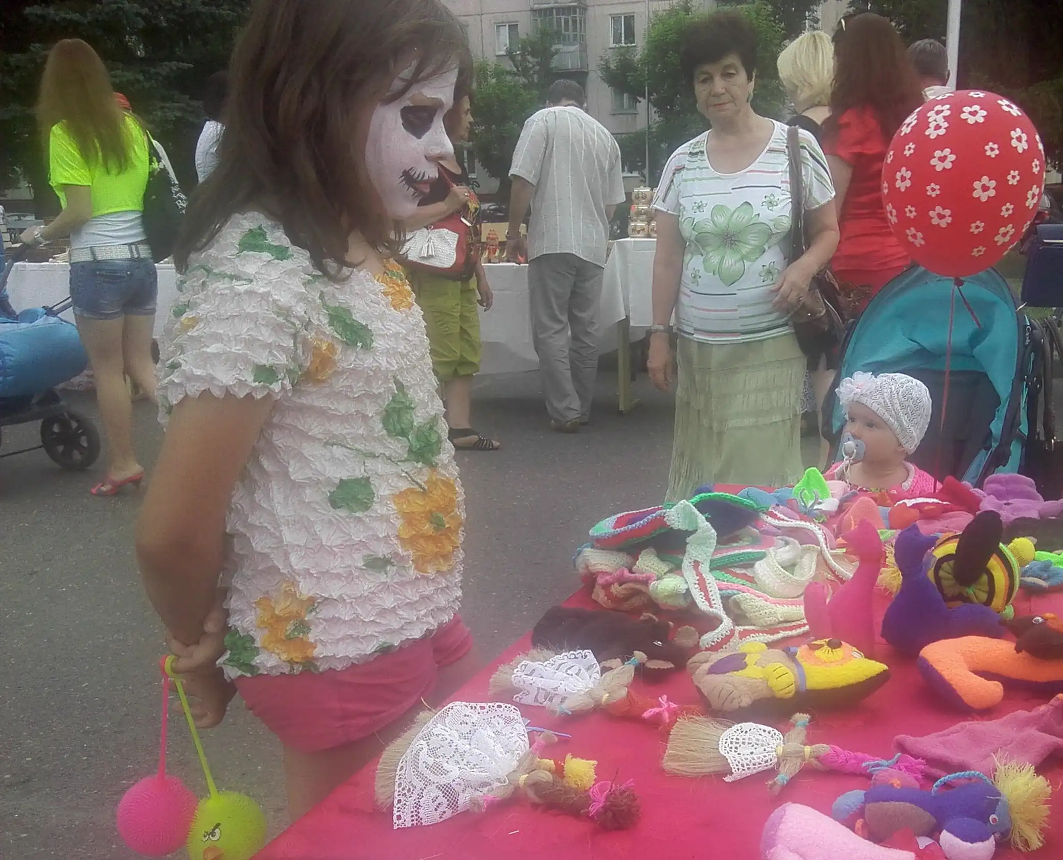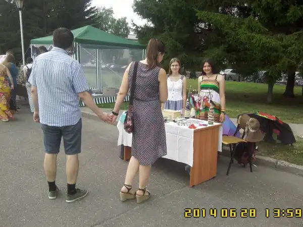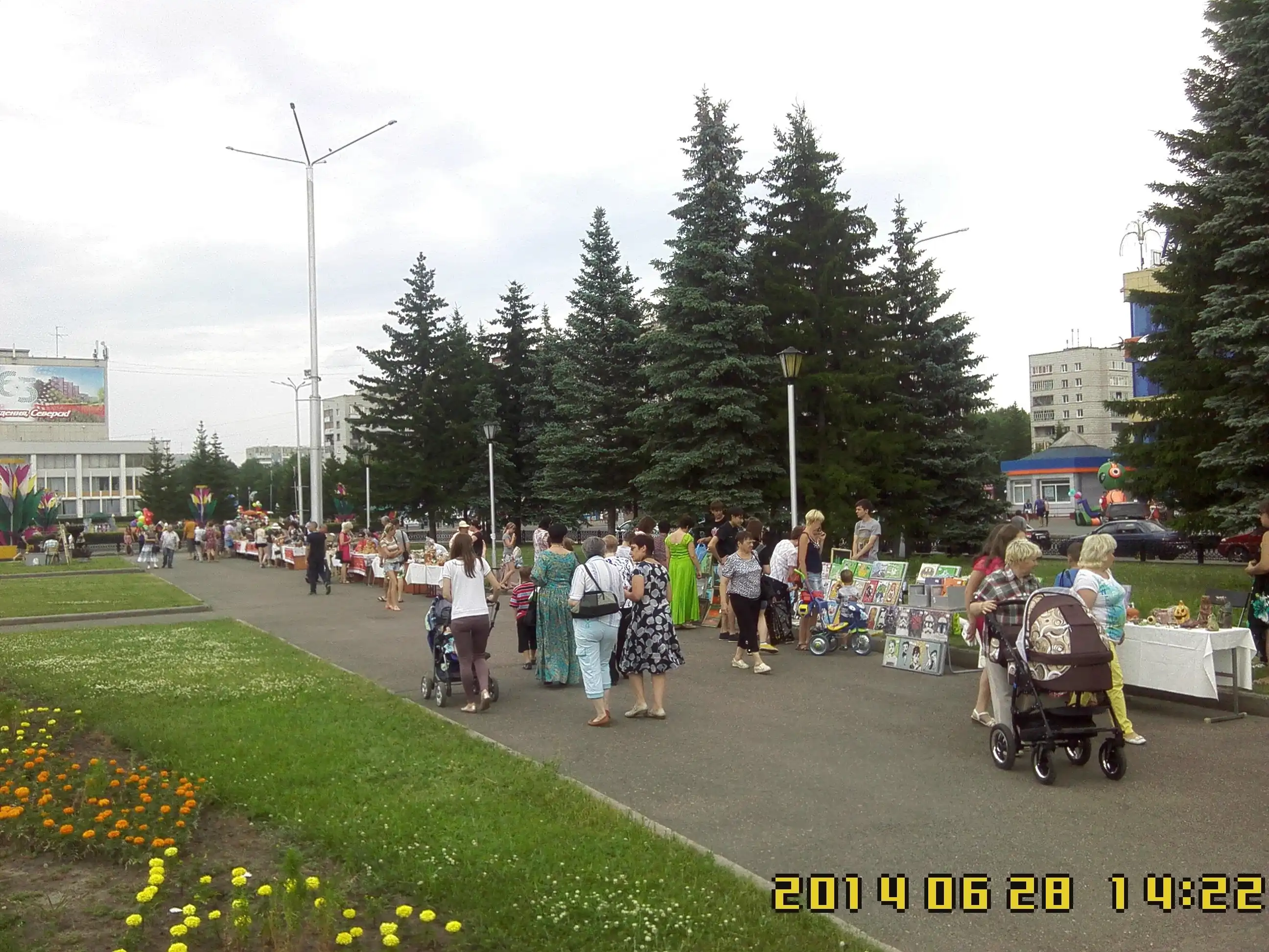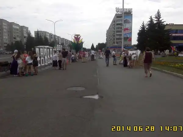 В этот день на театральной площади, напротив кинотеатра "Россия", проходила выставка-ярмарка работ Северских и Томских мастеров "Северский арбат"