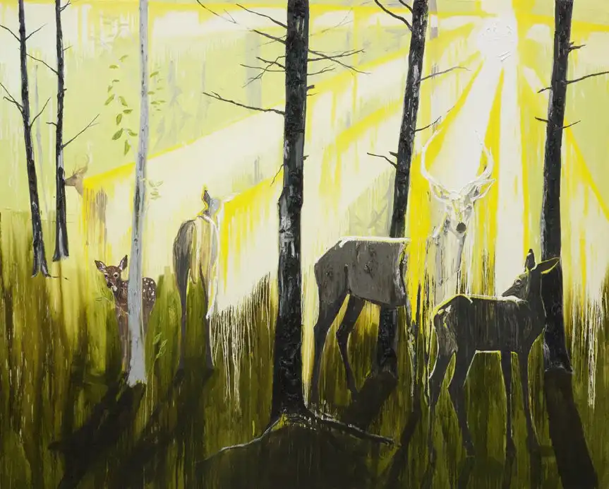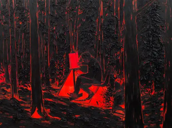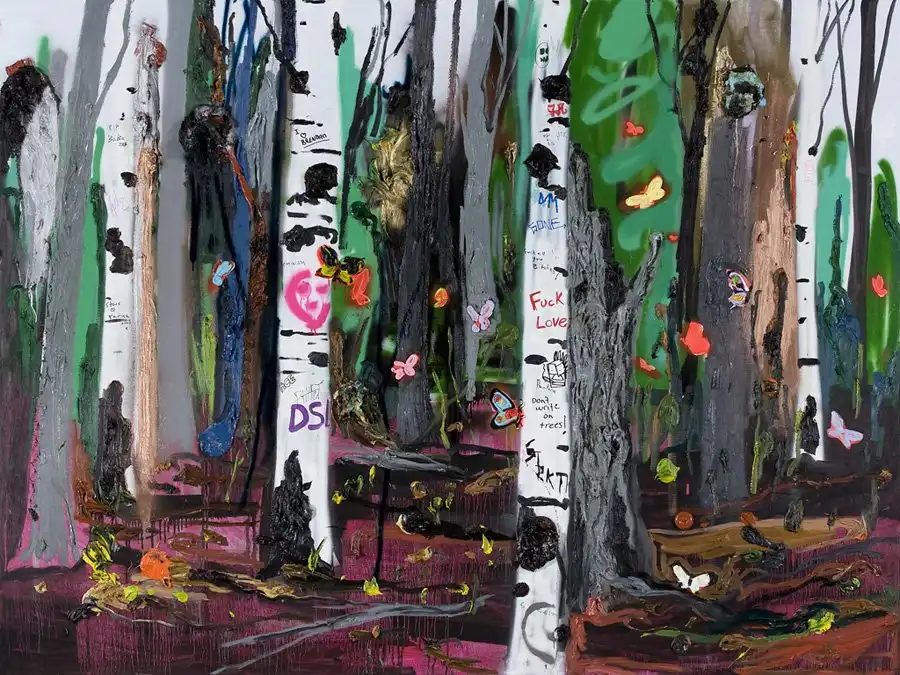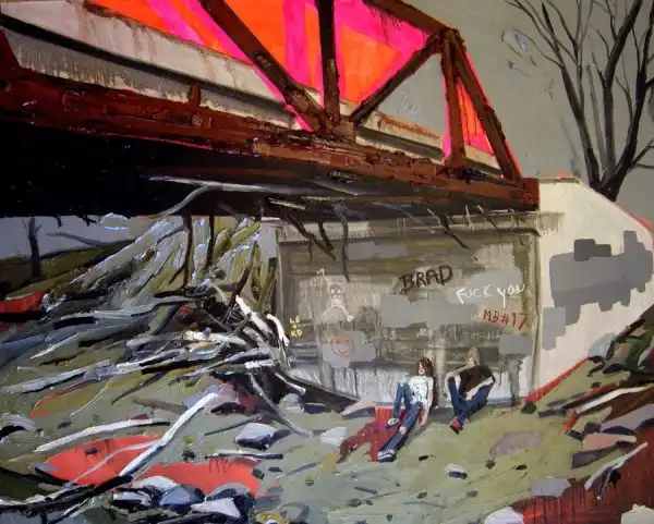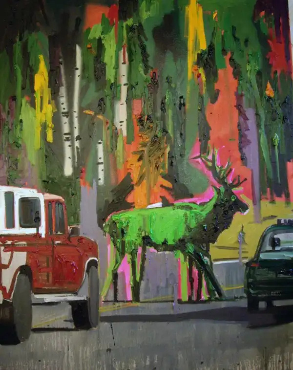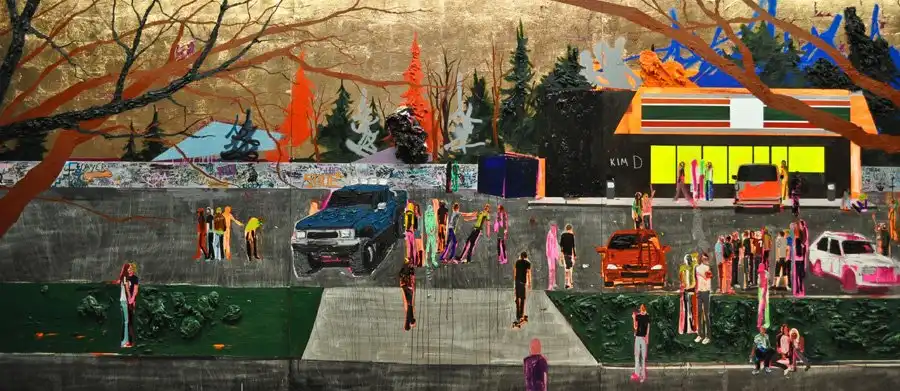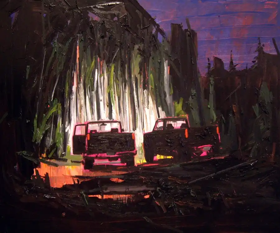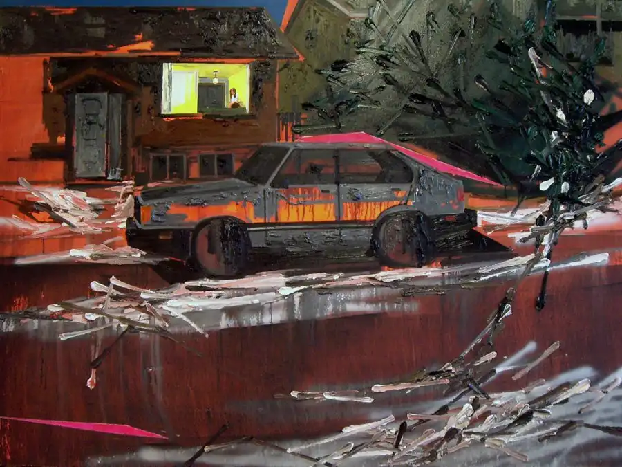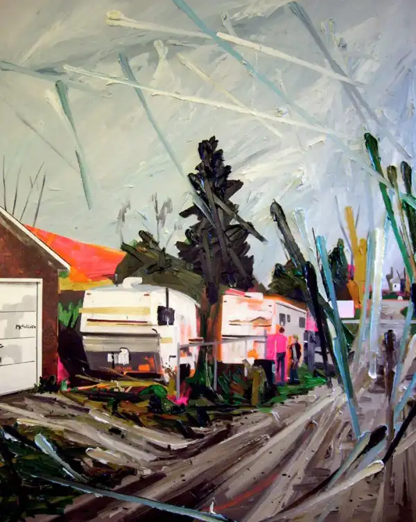 Ким Дорлэнд живет и работает в Торонто, Канада. В этом году отмечает юбилей — вот уже сорок лет коптит небо и портит холсты. Но портит крайне удачно — его огромные полотна объехали все известные галереи от Нью-Йорка до Милана. Дорлэнд известен, в первую очередь, своим экстремальным стилем (жирным мазками рубит маслом по холсту как дровосек) и размерами работ, многие из которых достигают шести метров в длину. Сам он парень центровой, но питает слабость к кантри и деревенским пейзажам — любит рисовать с натуры, хотя и признается, что брось его в каноэ, дай меч и он сразу сдохнет. Но пусть живет на зло другим художникам и на радость зрителям.