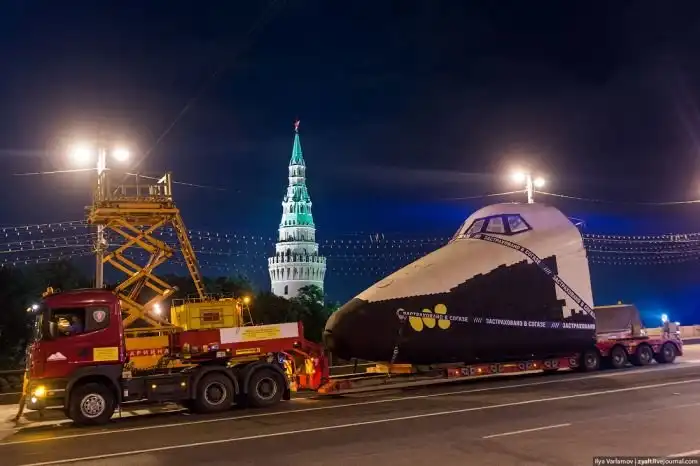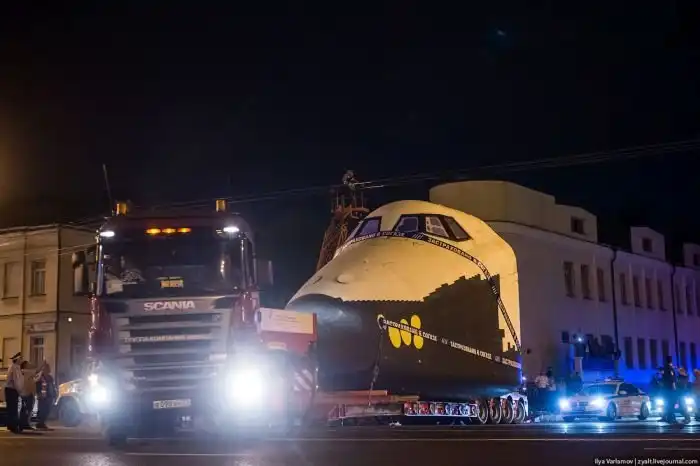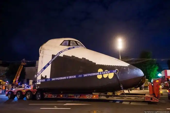 Ночью с субботы на воскресенье в Москве была проведена настоящая инженерная спецоперация, во время которой из Центрального парка имени Горького на ВДНХ по улицам столицы был перевезен 50-тонный космический челнок "Буран".