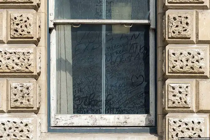 Грязные окна больницы тоже хранят послания фанатов