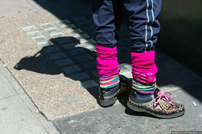 Второй день прогулок начнем с моды… в этом сезоне мужчины носят яркие носки, заправляя в них спортивные штаны…