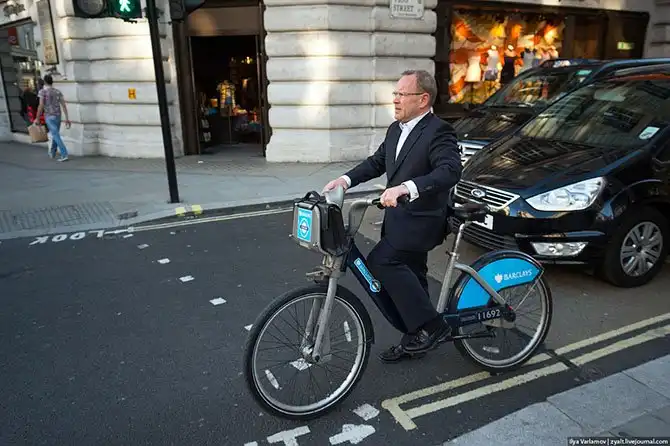 На велосипеде в Лондоне ездить можно и в дорогом костюме