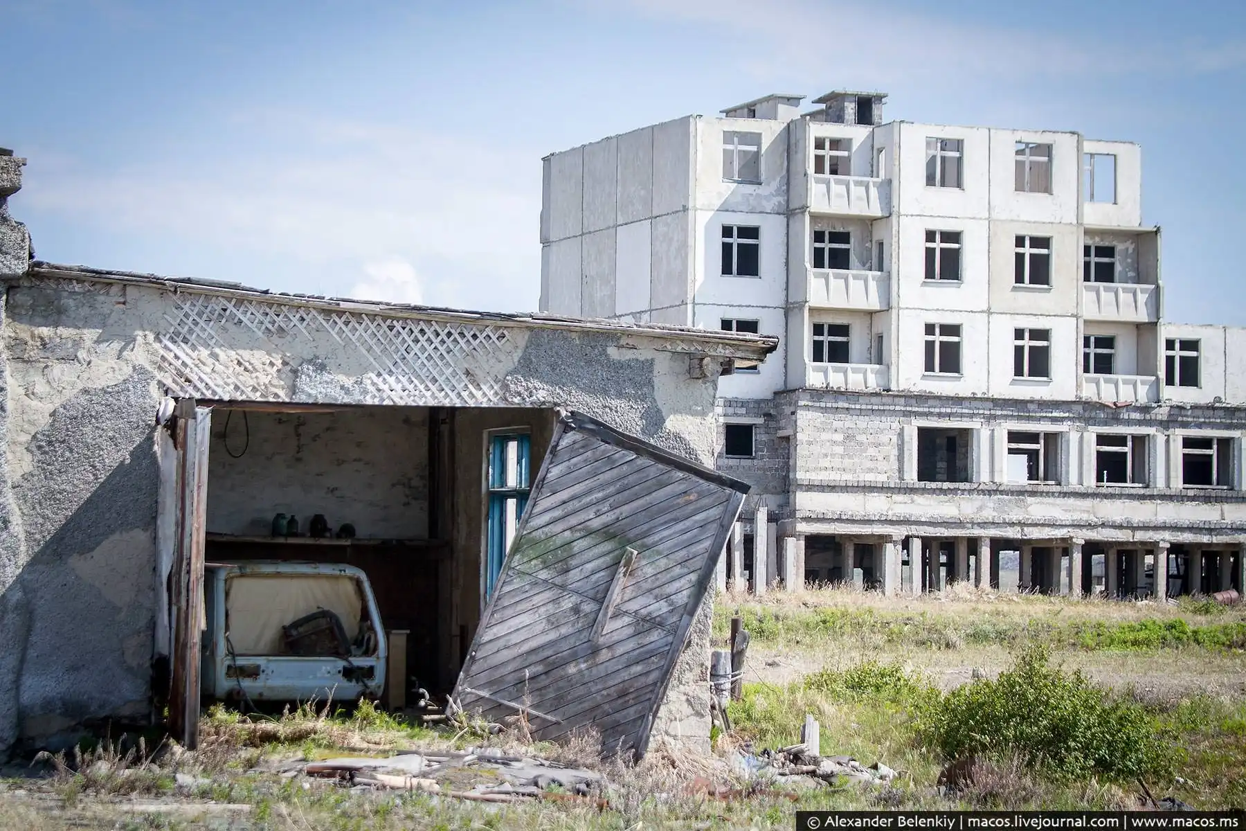 Посёлок на берегу моря. У кого-то курорт, а здесь разруха. Всё в таком состоняии не только из-за суровых зим, когда температура доходит до минус шестидесяти. Как раз во многом поскольку местные жители растаскивают всё, что плохо лежит.