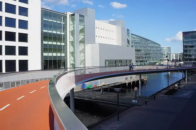 Прыгнуть в канал с пятиметровой вышки, построенной в форме носа корабля, и потратить пару часов на пляжный отдых, находясь при этом в центре города. Зимой сидеть там же в сауне с окном во всю стену, любоваться видом на городские огни и шокировать прохожих, невозмутимо шагая в купальнике к воде, чтобы окунуться между заходами в сауну.