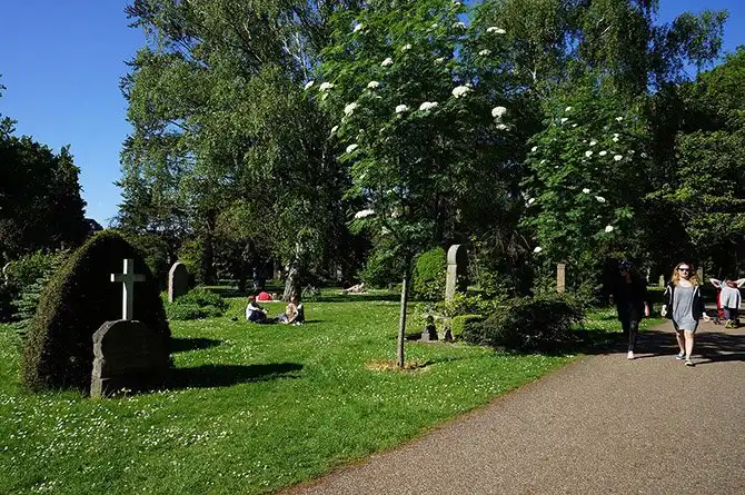 Устроить пикник на кладбище в окружении родителей с детьми, бегунов, студентов с книгами и ноутбуками.