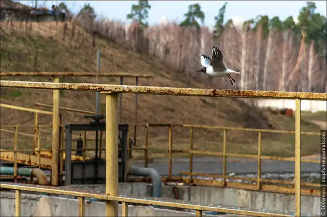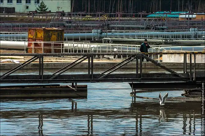 По сравнению с первичными отстойниками и аэротенками вода здесь кажется уже совсем чистой и не пахнет.