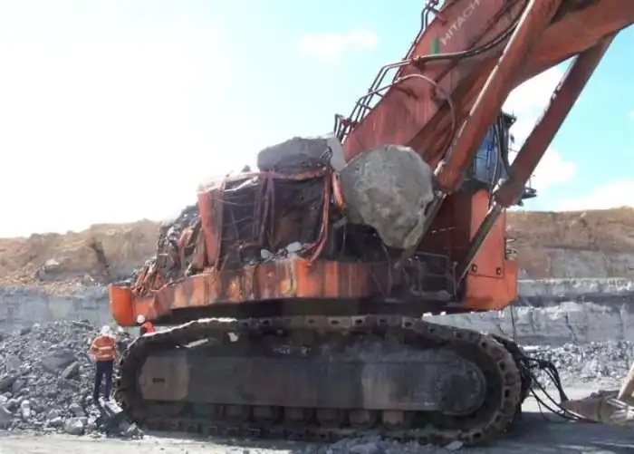 Думаю, многие из вас имеют представление о том, как при помощи взрывчатки производится разработка золотодобывающего карьера. Ведь так? Сегодня я хочу показать вам последствия нарушения правил безопасности на столь опасном объекте и разрушения, к которым привел неверный расчет взрывчатого вещества. К счастью, поблизости места взрыва не было рабочих, и никто не пострадал, чего не скажешь о дорогостоящем экскаваторе..