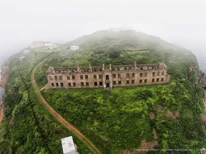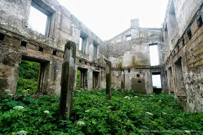 Первым делом, обосновавшись на маяке, разложив все наши вещи, мы отправились к полуразрушенной казарме. Именно на нее и обращают многие внимание, когда проходят мимо острова. Ее мистический и немного пугающий вид завораживает, манит туда, в голову лезут странные вопросы, вспоминаются отрывки из фильма «Остров проклятых».