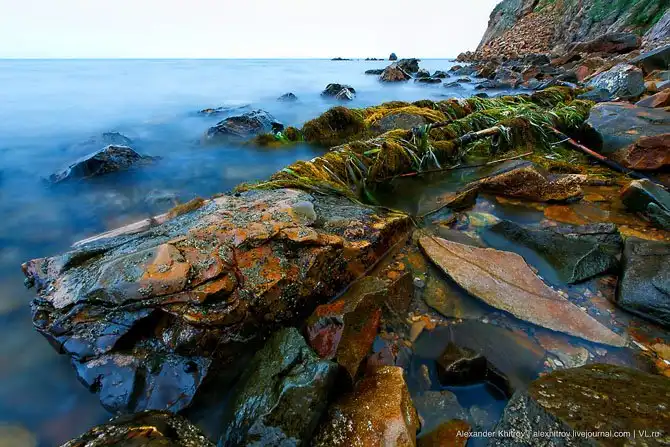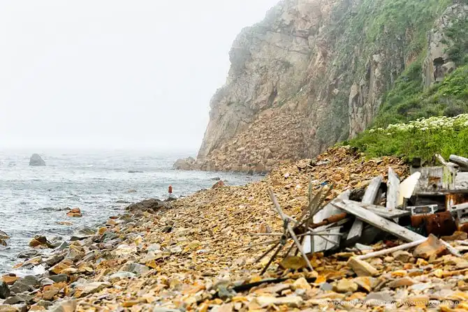 Примерно в 9-10 утра, уже полностью проснувшись, пошли к берегу. Просто поснимать, погулять, подышать. Тихо и спокойно. Вдали, из тумана, как и вчера, раздаются корабельные гудки. Звук слышно хорошо, но источника не видно. Будто бы корабль-призрак посетил эти воды.