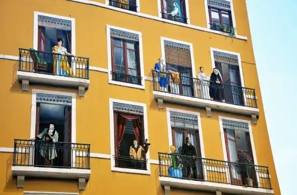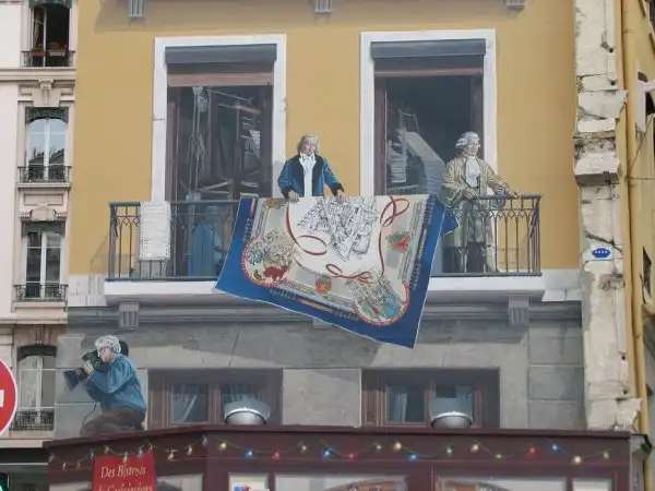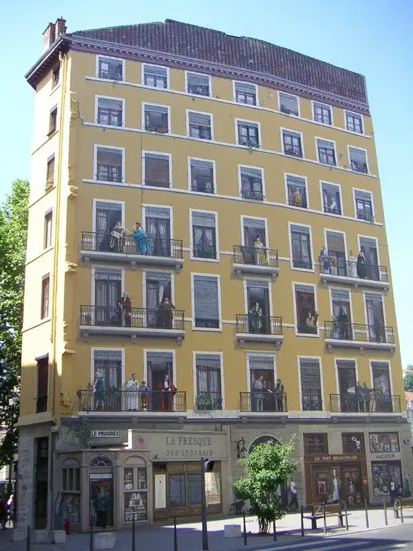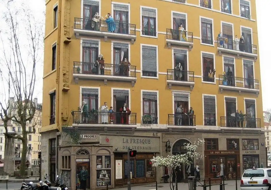 Как нетрудно догадаться, на самом нет никаких окон, балконов, дверей и людей - все это нарисовано на стенах здания во французском Лионе. Героями объемной «настенной живописи» (Fresque des Lyonnais) стали выдающиеся французы, оставившие след в истории.