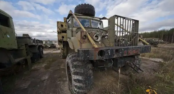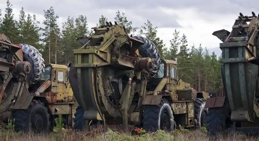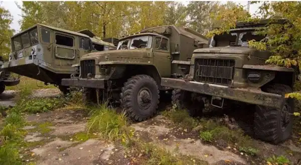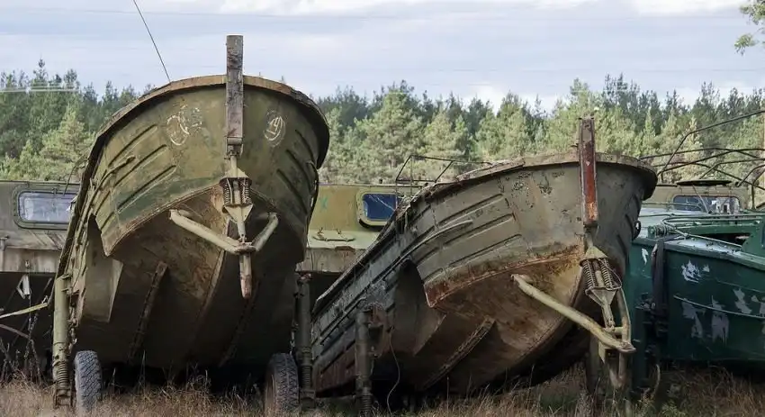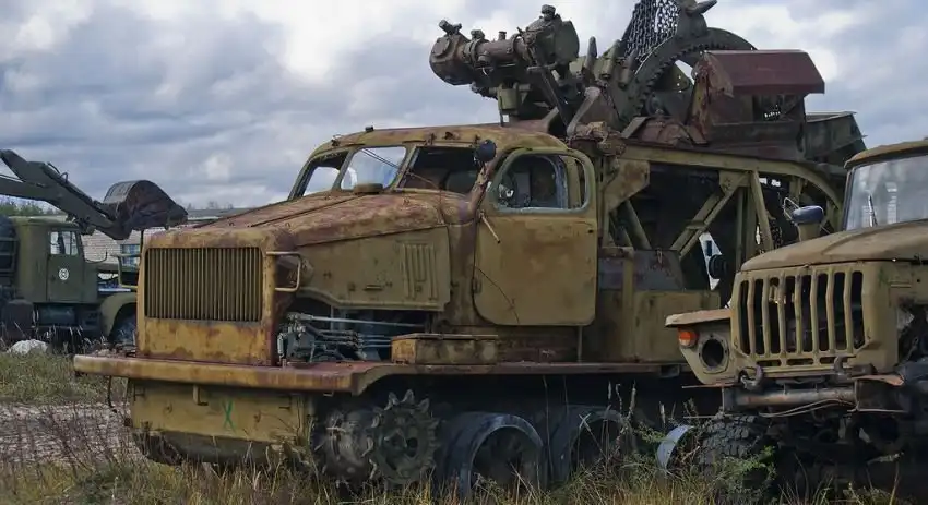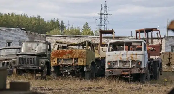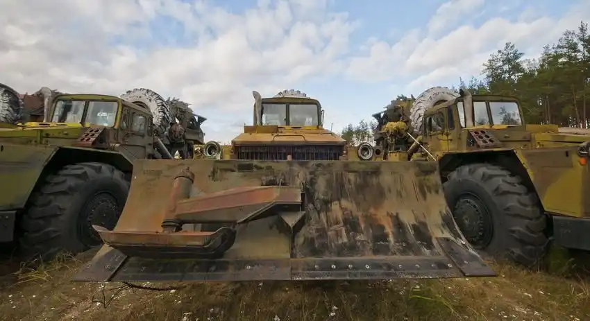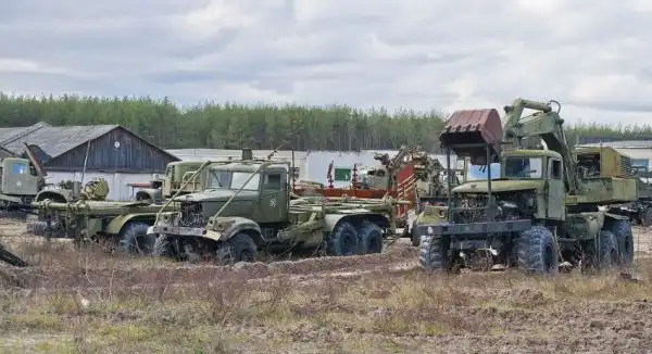 Территория, которую предстояло осмотреть, имеет размеры около 350х380 метров. Часть площади пустует, часть занята ангарами. Некоторое количество пространства заставлено разнообразной техникой инженерных войск. Какие-то из этих машин выглядят вполне живыми, какие-то требуют незначительного ремонта, каким-то помочь уже сложно. Некоторые имеют очевидные признаки того, что приехать сюда они смогли самостоятельно. Общее у всех них лишь то, что "живьём" и целиком они отсюда никогда уже не уедут