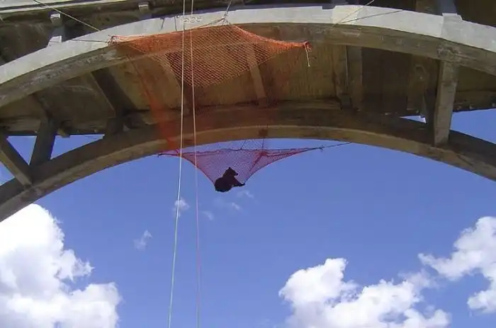 Ума не приложу, как 113-килограммовый медведь мог таким образом застрять на мосту над озером Тахо неподалеку от Траки, штат Калифорния. Конечно же, падение с высоты в 25 метров было бы для этого животного фатальным, поэтому спасатели поспешили к нему помощь ;)