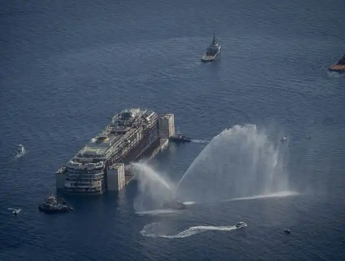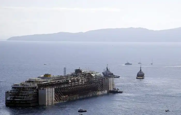 Не так давно мы с вами совершали виртуальную экскурсию внутри океанского лайнера "Коста Конкордия", а на днях было начато последнее путешествие этого в прошлом роскошного океанского лайнера в порт города Генуя в Италии.