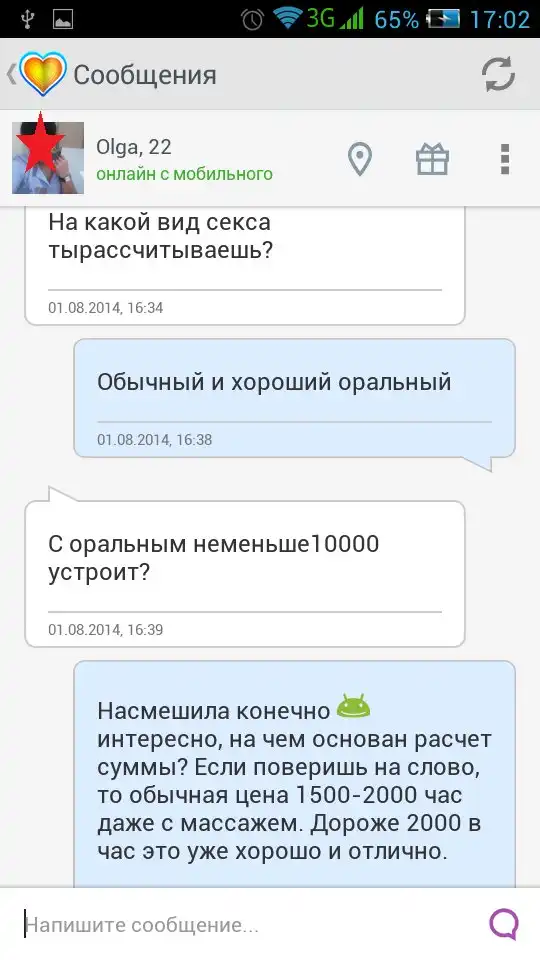 Скучно стало на работе под конец пятницы. Решил развлечься перепиской с юными девами.Переписка незатейливая, но мне показалось, что в умах молодежи что-то сместилось. Теперь просить деньги за секс- это не проституция