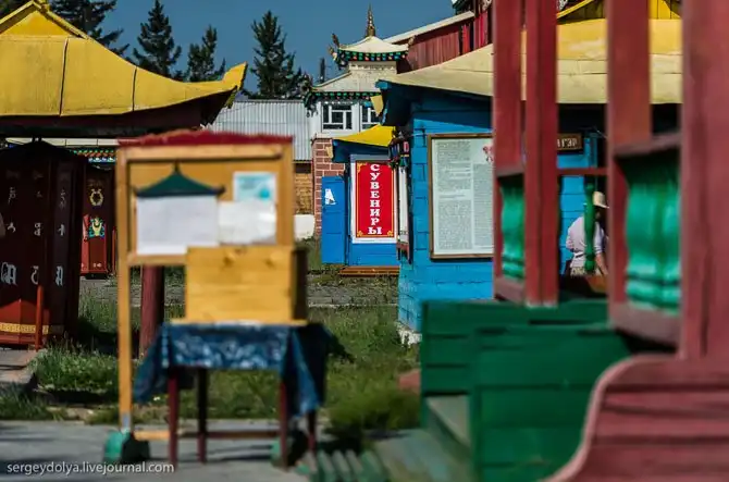 На территории дацана хорошо развита инфраструктура. Есть стенды информации, сувенирные лавки, столовая с национальной кухней: