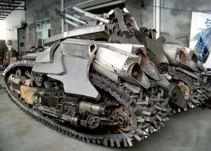 Один народный умелец из Китая был настолько впечатлен просмотром кинофильма Трансформеры, что решил своими руками собрать танк Мегатрон, используя для этого более 5 тонн металлолома.