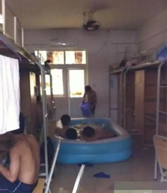 Летняя жара может доконать кого угодно. И как готовиться к предстоящему учебному году, если мозги у тебя закипают. Находчивые китайские студенты устраивают у себя в комнатах импровизированные бассейны. В прохладной водичке учить матчасть куда легче.