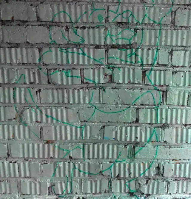 Итак, что мы имеем, это довольно таки большую площадь, и неровную кирпичную кладку, я вообще была без понятия как на ней рисовать. Сначала пробовала простым карандашом, но поняла что это глупая затея, поэтому обратилась к маркерам. С ними получалось лучше, и даже к концу нанесения эскизов поняла, что их можно корректировать простой влажной салфеткой.