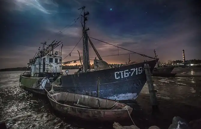Старый катер на Ладожском озере.
